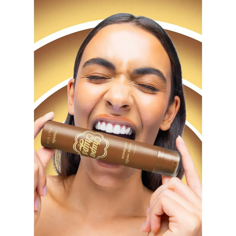 Колаборація Hismile x Chupa Chups створена для тих, хто хоче, щоб щоденна гігієна була не лише корисною, а й реально приємною. Зубна паста Choco Vanilla відтворює знайоме поєднання шоколаду та ванілі, перетворюючи чистку зубів на маленький десертний ритуал, але без цукру.