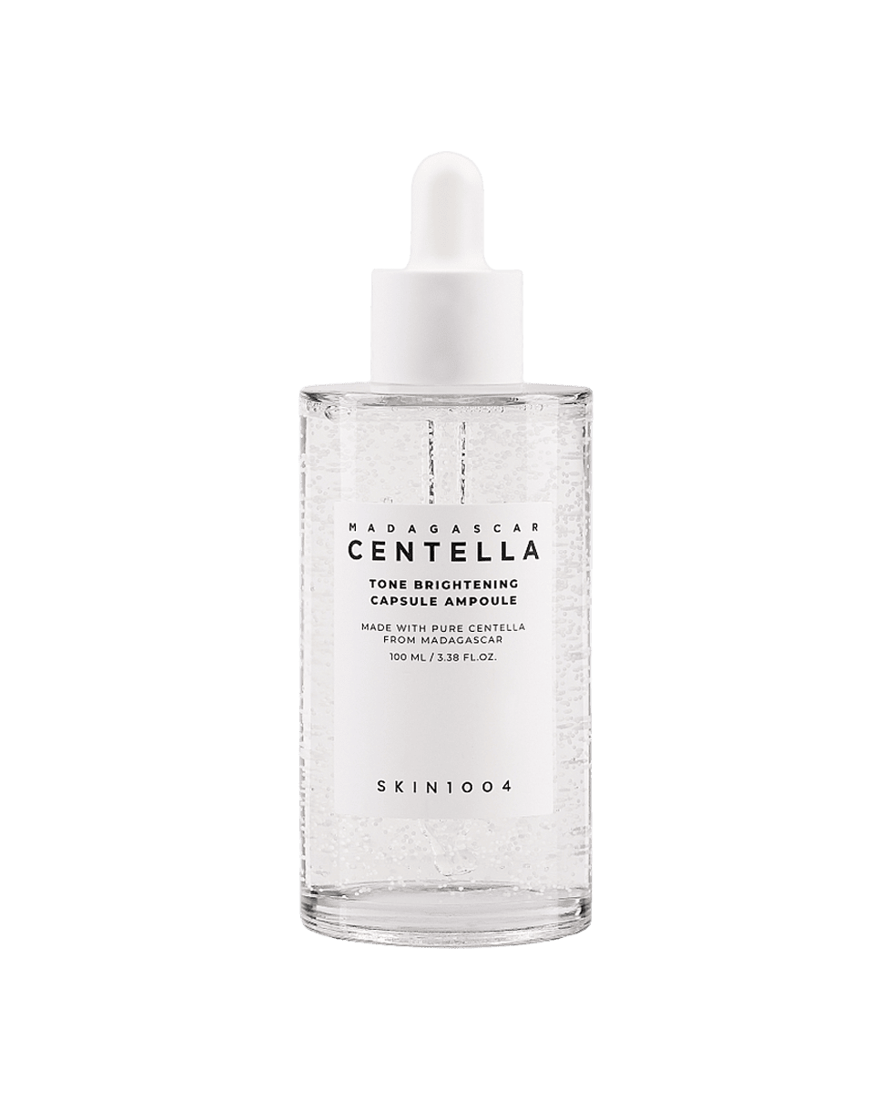 SKIN1004 Madagascar Centella Tone Brightening Capsule Ampoule — це інноваційна сироватка з капсулами активних компонентів, яка комплексно працює над відновленням, зволоженням та вирівнюванням тону шкіри. У складі — 67% чистого екстракту центели азіатської, що інтенсивно заспокоює, пришвидшує процеси регенерації та робить шкірний бар’єр стійкішим до подразнень. Потужний дует ніацинаміду та транексамової кислоти сприяє зменшенню пігментації, контролює вироблення себуму та додає обличчю рівномірного, свіжого вигляду. Пробіотичний комплекс підтримує здоровий баланс мікробіому, а аргінін відповідає за тривале зволоження та пружність.