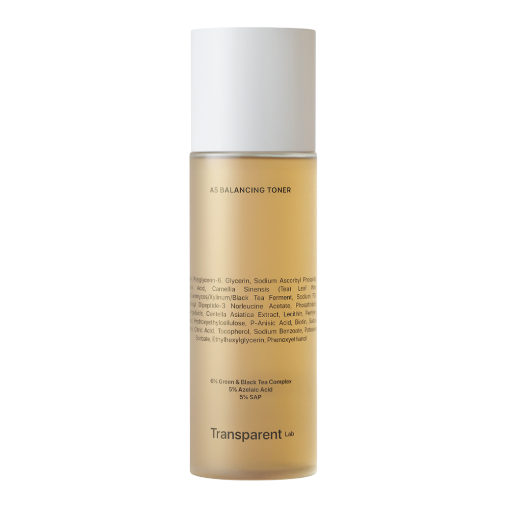 Transparent Lab A5 Balancing Toner — це інноваційна двофазна формула, що поєднує легкість тонера та концентровану дію сироватки. Засіб забезпечує комплексний догляд: балансує, освітлює, регенерує та захищає шкіру від зовнішніх подразників.