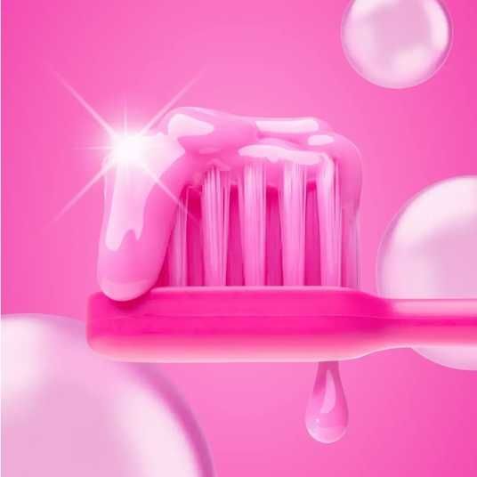 Вкус розовой жвачки — делает чистку зубов весёлым и приятным моментом, даря радостное настроение.