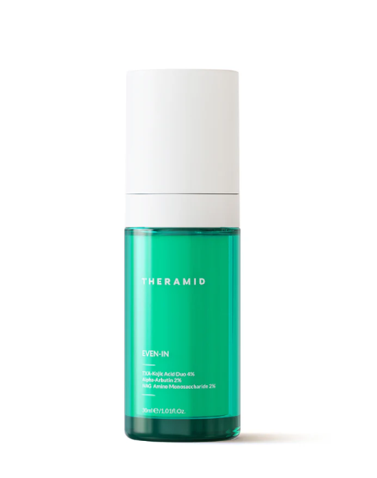 Theramid Even-In — современная осветляющая сыворотка, созданная для кожи с неровным тоном, постакне и гиперпигментацией. Благодаря инновационной формуле с транексамовой кислотой, альфа-арбутином, койевой кислотой, азелоглицином и N-ацетилглюкозамином, она воздействует на все стадии образования меланина, устраняя как поверхностные, так и глубокие пигментные пятна.
