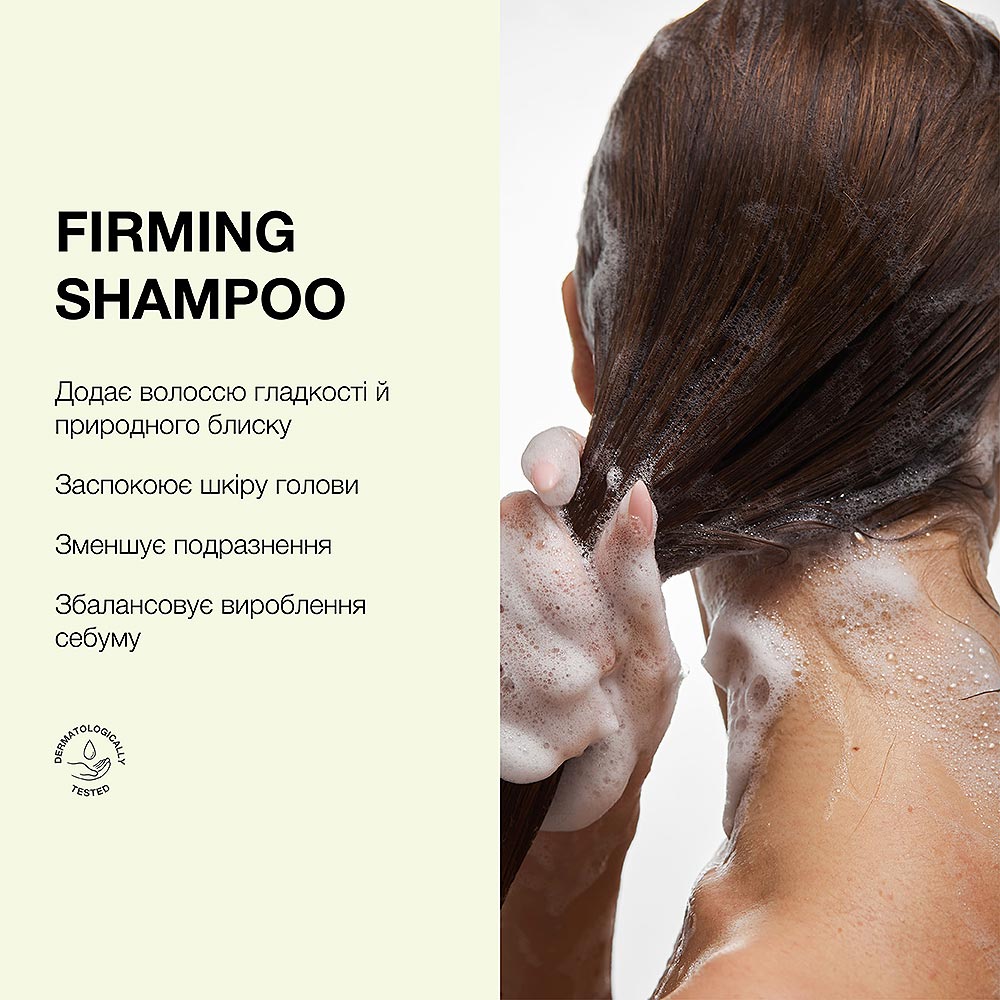 Firming Shampoo — це м’яке, але ефективне очищення, яке не порушує природний баланс і не пересушує волосся. Він щодня дарує те, що потрібно: свіжість, чистоту та делікатний догляд.